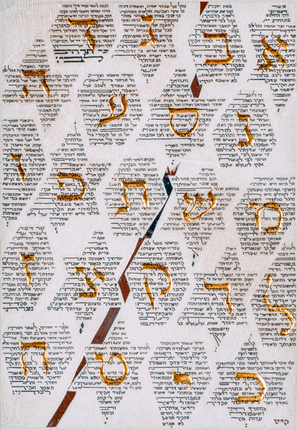 Psaume de David n°119 - Calligraphie sur parchemin tendu sur plexiglass, 18×26 cm. 176 versets en 22 paragraphes.